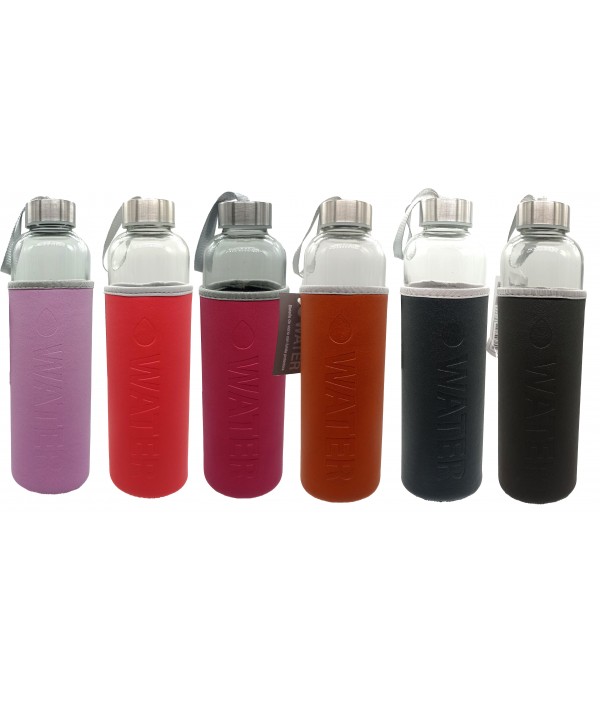 Botella de vidrio c/funda WATER 600cc  apro- 6 col - VIDRIO