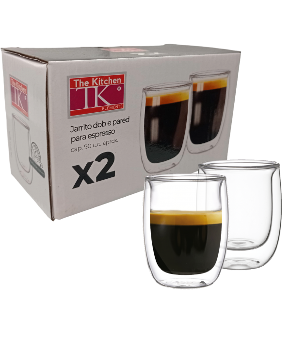 Set x2 jarros para espresso vidrio doble pared 90c - SET DE JUEGOS DE CAFE