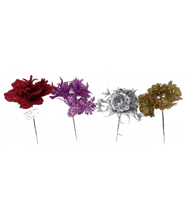 Solo tendrás que registrarte, pedir tu usuario y accedes a descuentos increíbles. Compra Ramillete flor 17cm en purpurina por mayor en Soiferh al mejor precio.