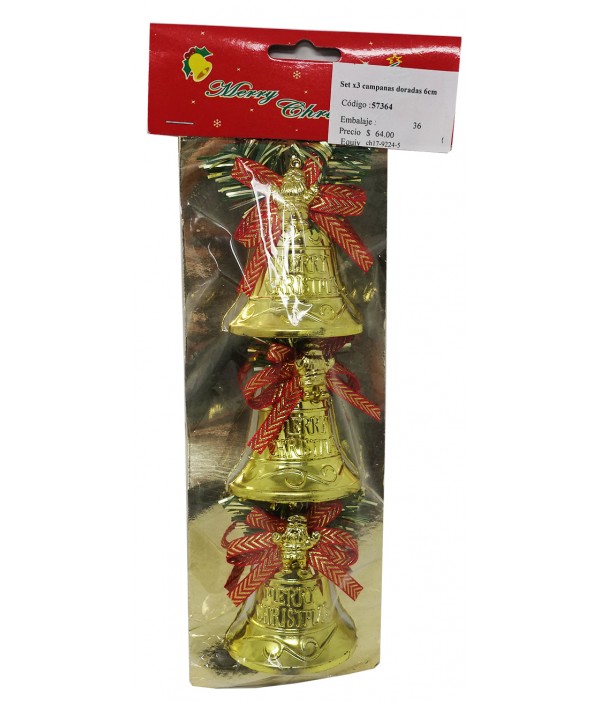 Solo tendrás que registrarte, pedir tu usuario y accedes a descuentos increíbles. Compra Set x3 campanas doradas 6cm aprox por mayor en Soiferh al mejor precio.