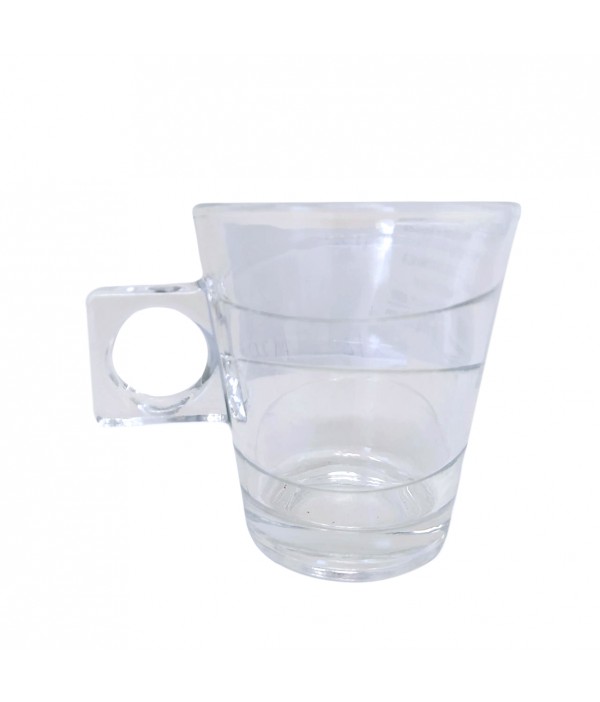 Jarro de café con manija, serie Bogotá. Capacidad 80 cc, altura aproximada 6.5 cm. Ideal para expreso o café corto. Diseño clásico y resistente, perfecto para uso diario o servicio en cafeterías.
